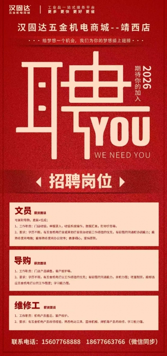 汉固达五金机电商城(靖西店)特聘英才!