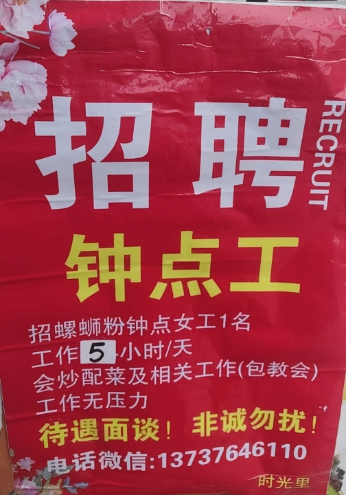 年后招工:世邦《时光里》招长期女工, 5小时/天,工资+提成,适合安安稳稳...